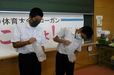 【勝ったB団団長からペットボトルを選び・・・(中には水が)】
