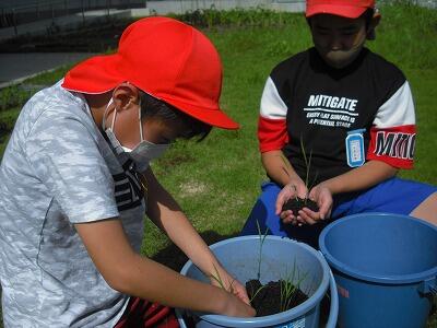 今後、脱穀、精米も自分たちの手でやっていきます。夏の長雨で昨年より収穫は少なそうですが、真っ白い、ほかほかのご飯を食べるのを心待ちにしている5年生です。