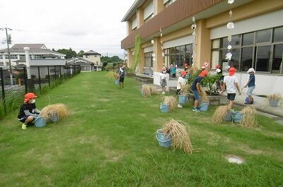 今後、脱穀、精米も自分たちの手でやっていきます。夏の長雨で昨年より収穫は少なそうですが、真っ白い、ほかほかのご飯を食べるのを心待ちにしている5年生です。
