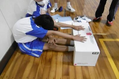 【長座体前屈:「いた~~~い!」の声連発!!】