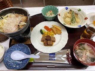 早いもので修学旅行も終盤、最後のお食事です。(桜見亭にて)