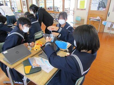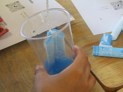 【実際に触ってみたり、吸水性を確認したり、処分の仕方を経験したり・・・。】