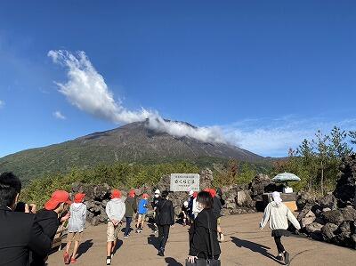 ご覧のとおり、青い空、雄大な桜島のもと・・
