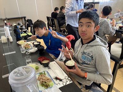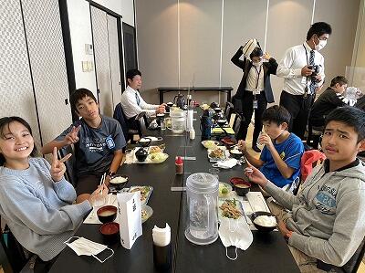 11月5日(水)は、ヴィアマテラス宮崎の選手が9名来校し、子どもたちと一緒に給食を食べました。この日のメニューは「米粉パン、牛乳、秋のかおりシチュー、花野菜サラダ」でした。シチューの中には、秋を代表するさつまいもやしめじがたっぷり入っていました。選手や学級の仲間と食べる給食はとてもおいしかったですね!一人で食事をするより、食事をする相手がいる方がより幸せを感じるそうです(*^▽^*)給食の後は、選手と一緒に運動場でサッカーをしたりおにごっこをしたり、みんなで楽しい時間を過ごすことができました!