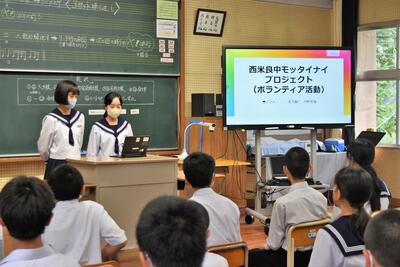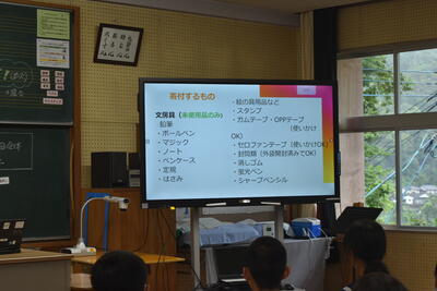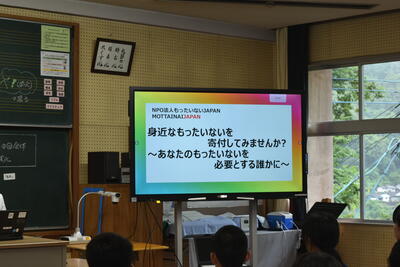 西米良中では、「西米良中モッタイナイプロジェクト」と称して、使わなくなった物の再利用に力を入れています。昨年度は、使い捨てカイロを集め、「GoGreenGroup 株式会社」に寄付し、ヘドロに含まれる有害物質の無害化に協力しました。