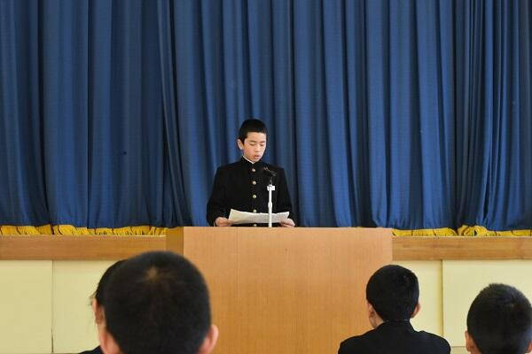 また、今年度の努力点として、話し言葉で自分の考えや質問、お願いなどを的確に伝える、そういう「話し言葉でのコミュニケーション力」を高めようと呼びかけました。昨年度に成果をあげた、作文等の「書き言葉(文字)」での伝える力に話し言葉でのコミュニケーション力が加われば、高校入試での面接や高校進学後の生活に大いに役立つと思います。