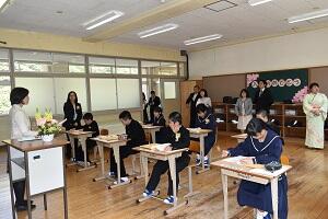 3月の村所小学校卒業式から約2週間しか経っていませんが、制服姿も板に着いて、すっかり中学生の雰囲気を感じました。また、入学式でのはつらつとした返事やしっかりと前を見つめる眼差しに中学校生活への意気込みを感じました。生徒19名と職員14名が、保護者や地域の方々の応援をいただきながら、令和の世に学校の新しい歴史を書き加えていきたいと思います。