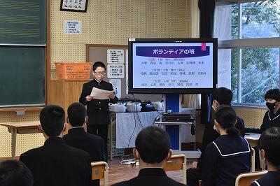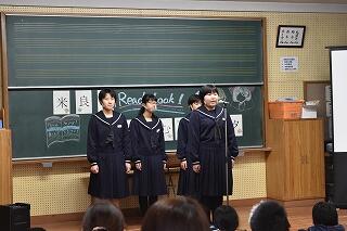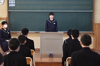 各学年とも堂々とした発表で、生徒個々の成長を感じさせられるものでした。新型コロナウィルスが猛威を振るっていますが、体調管理を徹底しながら3学期を充実させたものにしていきましょう。