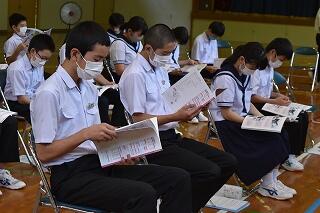618日に高校説明会が行われました。今年の高校説明会は新型コロナウイルスの感染が拡大している状況を鑑み遠隔にて実施しました。全部で5校の高校から各学校の特徴等を説明していただきました。担当の先生方、丁寧な説明をありがとうございました。また、本校を卒業した生徒数名が登場する場面もあり、会が大いに盛り上がりました。