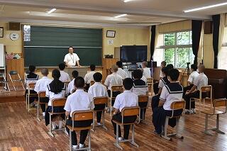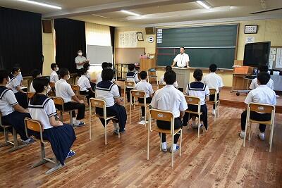 「がん」について普段の学校生活で学ぶことは少ないため、生徒も職員もとても貴重な話を聞くことができました。講演会前には生活保体委員会が全校アンケートを集計し、西米良中学校の実態を発表してくれました。これからもずっと健康で元気に生活を送ることができるように、講演会で学んだ知識を今後の生活に活かしていきたいと思います。