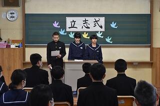 122日(金)に立志式を行いました。2年生7名全員が、それぞれ、「志」を立てこれからの目標や夢を、生徒保護者、1,3年生が見守る中力強く発表することができました。