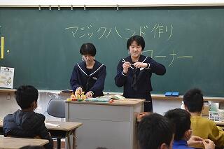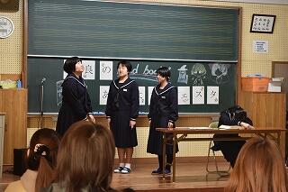 12月1日(火)、演劇企画「二人の会」の方をお招きし、村所小学校にて小中合同の鑑賞教室を実施しました。臨場感あふれる「語り」と「パントマイム」に多くの生徒が魅了されました。後半はパントマイムの実技指導の他、代表生徒が舞台で実際にパントマイムを披露し、会は大いに盛り上がりました。普段、経験できないことを体験することができ充実した時間を過ごすことができました。「二人の会」の皆様、ありがとうございました。