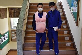 また、後半は1.2年生、地域の方も参加し模擬妊婦体験や母親・赤ちゃんとの交流も行いました。この授業を通して、改めて自他のいのちや自己の存在価値を再認識することができました。