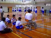 中学生が応援の仕方などを教えていました。みんな元気いっぱいです。