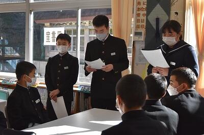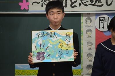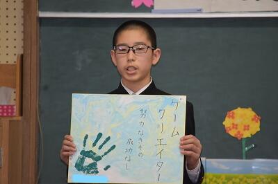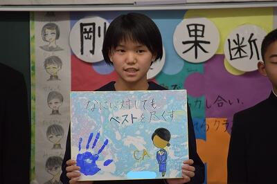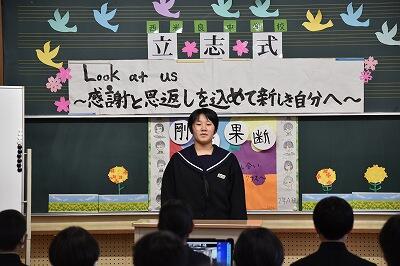 1月19日(水)、立志式を行いました。2年生9名が、それぞれ「志」を立て、これからの目標や夢を保護者、1・3年生や先生方が見守る中、力強く発表することができました。