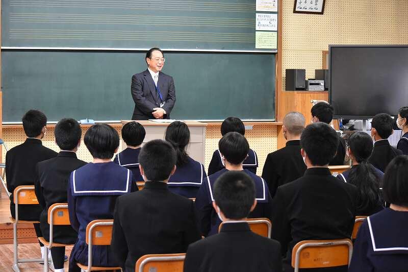 令和3年度、最後の第5回学校参観日が行われました。1年生は「音楽」、2年生は「英語」、3年生は「数学」でした。生徒全員が保護者の前で堂々と発表しており、1年間で成長した姿を見せられたのではないかと思います。また、学級懇談を行った後、音楽室にて、全体懇談会を行いました。