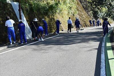 11月15日(水)に全校生徒で学校道の清掃を行いました。