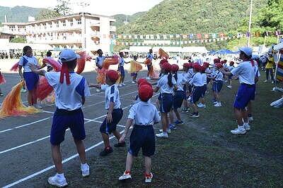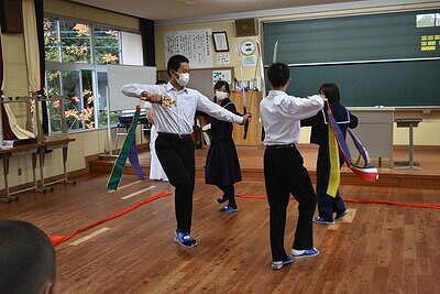 合唱曲としてもよくつかわれる曲「明日を信じて」や西米良の伝統「米良太鼓」の練習を行いました。メラリンピックで披露する米良太鼓がとても楽しみです。