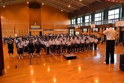 最後に、部活動紹介も行われました。ソフトテニス部、剣道部ともに新入生を加えて、それぞれの目標に向けて日々の練習を頑張りましょう!!