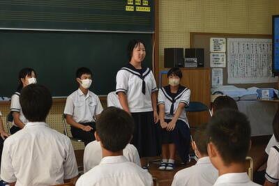 1年間西米良中学校をよりよくしようと奮闘してくれた前生徒会、専門委員長から新しい生徒会、専門委員長に対して激励の言葉と感謝の言葉が述べられた後、新生徒会、専門委員長から抱負が述べられました。