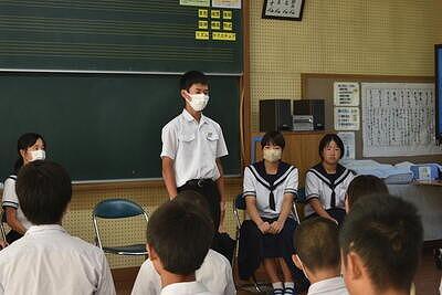 5月19日の午後、西米良中学校をより良い学校にするために、生徒総会が行われました。今年のスローガンは「創る」、作るとは違い、ゼロから生み出すという意味が強い言葉です。つまり、無限の可能性であるということです。