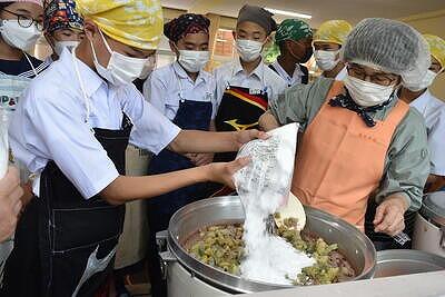 この日は、弁当の日も兼ねていました。バランスを考えて自分で作ったお弁当をおいしそうに食べていました!