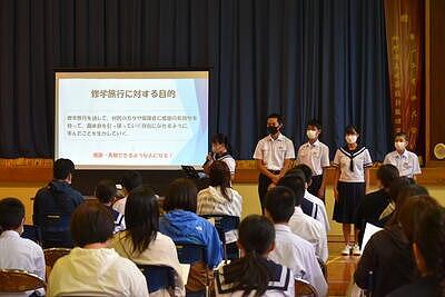 また、修学旅行についての発表もありました。それぞれの役割でスライドを作り、とても分かりやすく工夫されているところから修学旅行への思いを強く感じました。