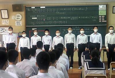 第1回学校参観日が行われました。1年生は「国語」、2年生は「社会」、3年生は「学活」の授業を、それぞれの学級担任の先生方が行いました。どの学年の生徒も、最初は緊張している様子でしたが、いつも通りの集中して授業に取り組んでいました。発表時も堂々とした態度で素晴らしい発表ができていました。