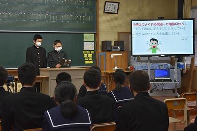 各学年の代表生徒が3学期の目標を述べてくれました。勉強はもちろん生活面や部活など様々な面での具体的な目標でした。達成のために頑張ってほしいです!!