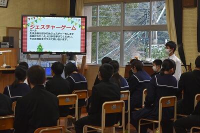 その後、レクリエーションが行われ、先生方も参加して、西米良中学校全員で親睦を深めることができました。