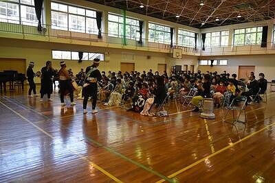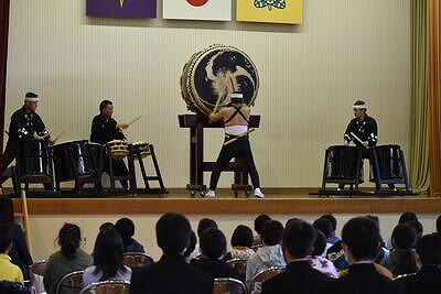 11月28日(火)に鑑賞教室がありました。今回は橘太鼓「響座」の4名の方々をお招きし、公演をしていただきました!