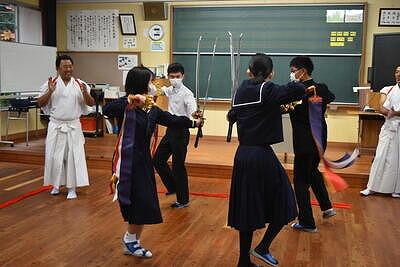 わんこそば体験後、遠野市立西中学校に移動し、交流を行いました。