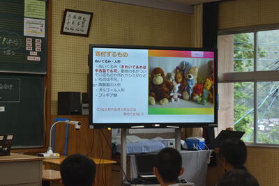 西米良中では、「西米良中モッタイナイプロジェクト」と称して、使わなくなった物の再利用に力を入れています。昨年度は、使い捨てカイロを集め、「GoGreenGroup 株式会社」に寄付し、ヘドロに含まれる有害物質の無害化に協力しました。