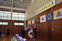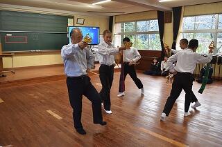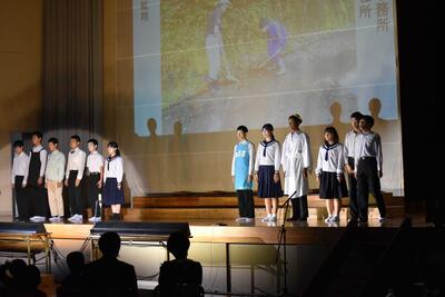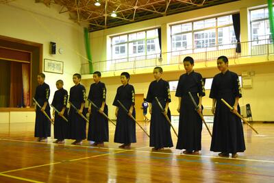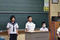 最後に、部活動紹介がありました。ソフトテニス部、剣道部が日頃の練習の様子を見せてくれました。
