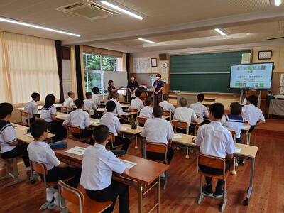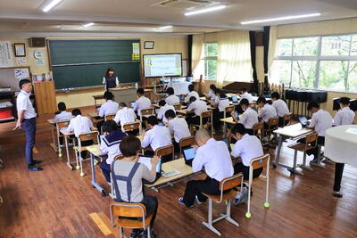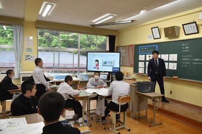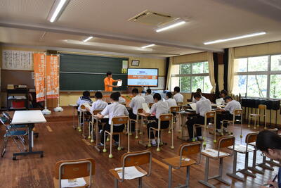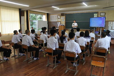 西米良村に地域おこし協力隊で来られている矢野淳さん、近藤伊智子さん(すまいる課)にお話しをしていただきました。生徒は、西米良村の良さや課題、人とのつながりが大切であることを再確認できたようです。