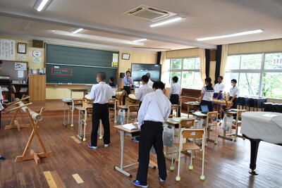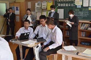 今回は、2年生(国語)と、3年生(数学)で公開授業を行いました。授業の前までは、生徒から「緊張する」などの声がありましたが、普段通りに授業を受けることができました。