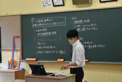 本年度の教育実習生の中武碧唯先生が初めて授業を行いました。堂々と授業を行ってくれました。