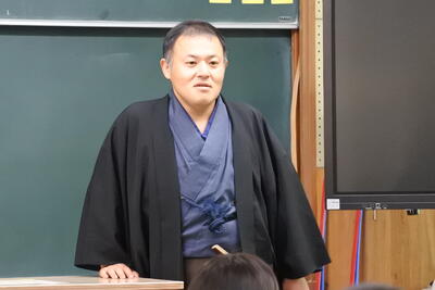 授業後、中村学園大学の山本朋弘教授から 演題「AI時代の主体的な学び手をどう育てるか~一斉、個別最適・協働、探究学習の具体的な展開~」で講演をしていただきました。