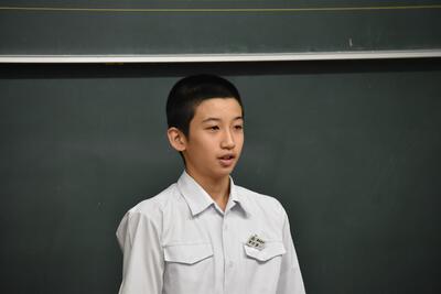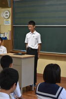 生徒会役員が学校行事や生徒会活動などの説明を行った後、1年生が自己紹介を行いました。1年生は、「勉強と部活を頑張りたい」「テストを頑張りたい」など、中学校での抱負を述べてくれました。