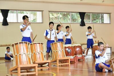 米良太鼓の練習がスタートしました。3年生は、集大成ともあり、練習から力が入っています。
