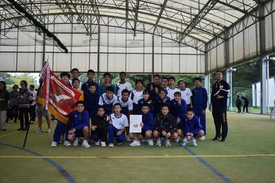 フリースタイルフットボールを始めたきっかけや優勝するまでの努力などを話していただきました。また、一番難しいとされる技を見せていただき、生徒のみんなからは歓声があがりました。