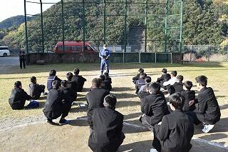 12月5日(木)、火災を想定した避難訓練を行いました。西都消防本部の方々に来ていただき、避難の様子を見ていただきました。避難は、「おはしも」を意識し、速やかに避難することができました。