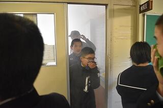その後、消火体験や煙体験を行いました。煙体験では、姿勢を高くした状態での避難と低くした状態での避難を比較することができ、低い姿勢で避難することの大切さを体感することができました。