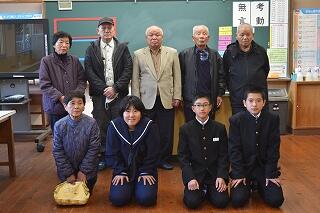 12月9日(月)、ほのぼの学級がありました。上米良老人クラブの方6名をお招きし、本校1年生に話をしていただきました。