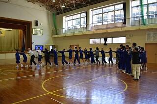 2日目は、遠野市立遠野東中学校との交流会がありました。学校紹介をした後、レクリエーション等を行いました。