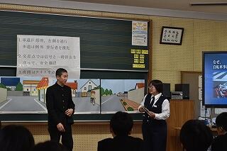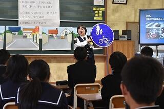 「ながらスマホ」の危険性や自転車でも歩行者の命を奪ってしまうこと、自転車安全利用五則などを学ぶことができました。