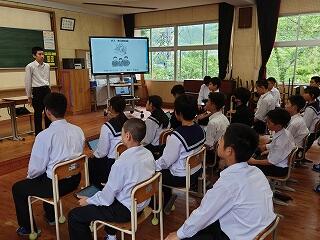 11/21(金)にリーディングDXの研究公開が西米良中で行われました。中村学園大学の山本朋弘教授にご来校いただき、授業参観、ご講演をしていただきました。ハイブリッド開催ということで、西米良中に来られた方だけでなくオンラインでも授業を参観されていて、100名近くの方が参加された研究公開となりました。