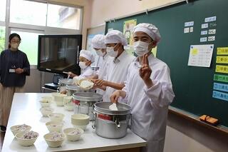 6月12日に、郷土料理教室がありました。2年生が参加し、西米良村婦人会の方々と郷土料理を作りました。