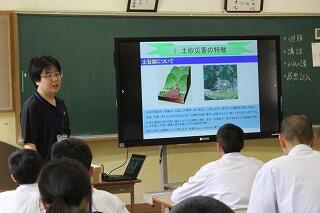 土砂災害には3種類あることや、西米良中学校の周辺が土砂災害警戒区域であることなどを教えていただきました。