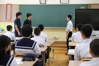 そのあと、本校を卒業した先輩たちの話を聞く、「ようこそ先輩」を開催しました。今回来てくれたのは、昨年度卒業した7名の先輩方です。進学した学校のことや受験の時に取り組んだこと、寮生活についてなど、様々な話をしてくれました。